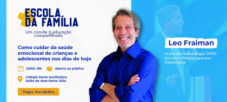Nesta edição, a instituição receberá o psicólogo e especialista em educação Léo Fraiman, que ministrará a palestra “Como cuidar da saúde emocional de crianças e adolescentes nos dias de hoje”. O tema propõe uma reflexão sobre os desafios enfrentados por famílias e educadores diante das demandas emocionais da infância e da adolescência na contemporaneidade.