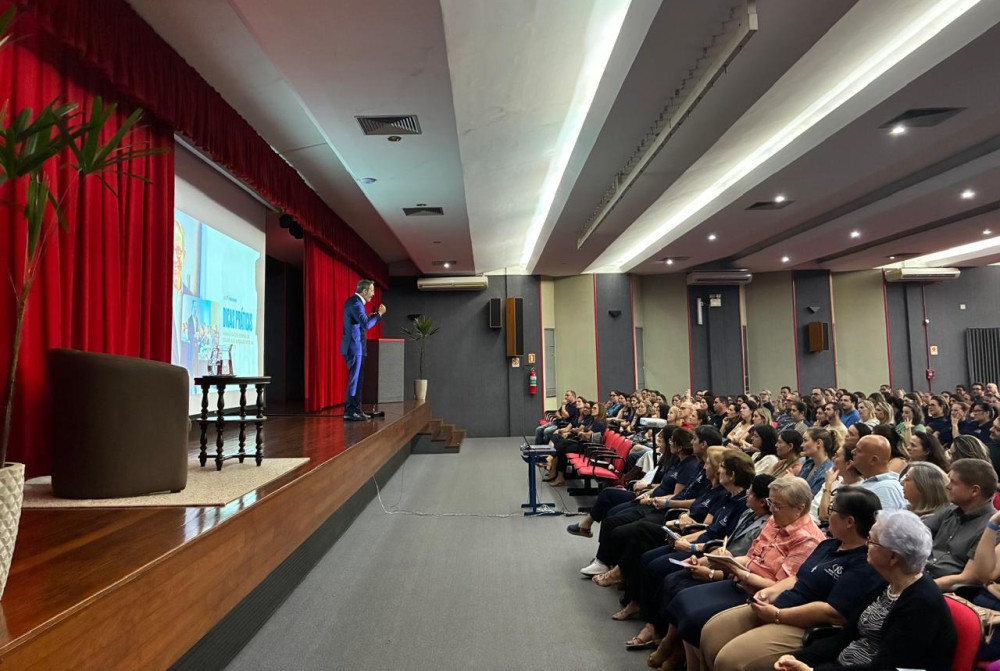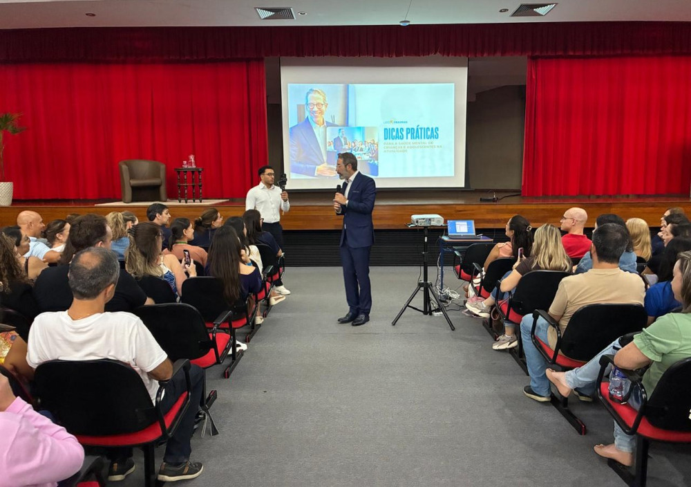 Refletir sobre o tempo, os vínculos e o verdadeiro sentido da felicidade foi o ponto de partida para uma noite inspiradora de aprendizado e conexão no Colégio Maria Auxiliadora. O encontro reuniu famílias, educadores e a comunidade em geral na primeira edição do ano do projeto Escola da Família. O psicoterapeuta, escritor e palestrante, Léo Fraiman, abordou o tema “Como cuidar da saúde emocional das crianças e adolescentes nos dias de hoje.”
