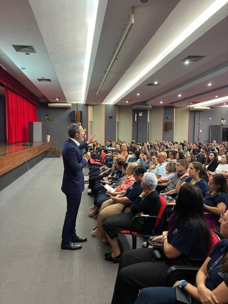 Ao longo da palestra, o criador da Metodologia OPEE (Orientação Profissional, Empregabilidade, Empreendedorismo e Educação Socioemocional) convidou o público a olhar para a própria vida e para o uso do tempo, considerado por ele um dos bens mais preciosos. “O que estamos fazendo da nossa vida?”, questionou, incentivando uma reflexão sobre coerência, propósito e escolhas cotidianas.