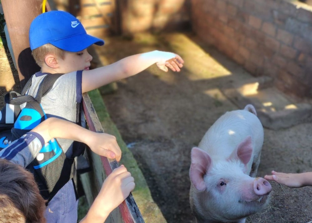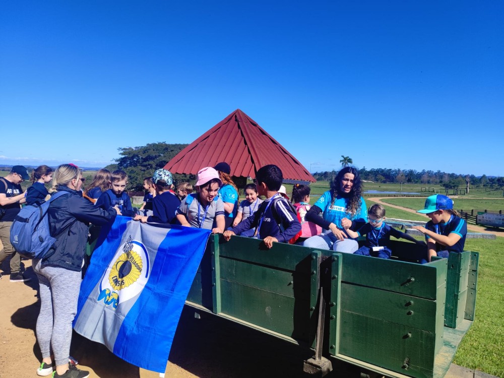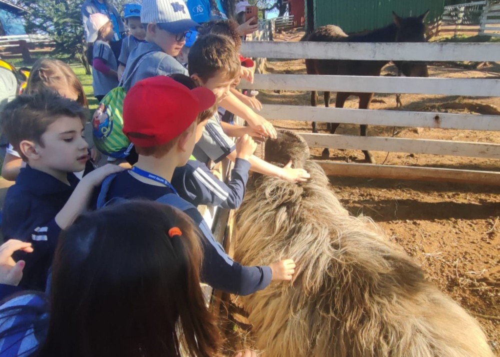 No dia 12 de setembro, os estudantes do Pré II da Educação Infantil participaram de uma enriquecedora Saída Pedagógica à Quinta da Estância – Fazenda de Turismo Rural, Ecológico e Pedagógico. A atividade teve como propósito ampliar e valorizar os conhecimentos sobre a história e a cultura do Rio Grande do Sul, proporcionando momentos de descoberta por meio de vivências práticas.
